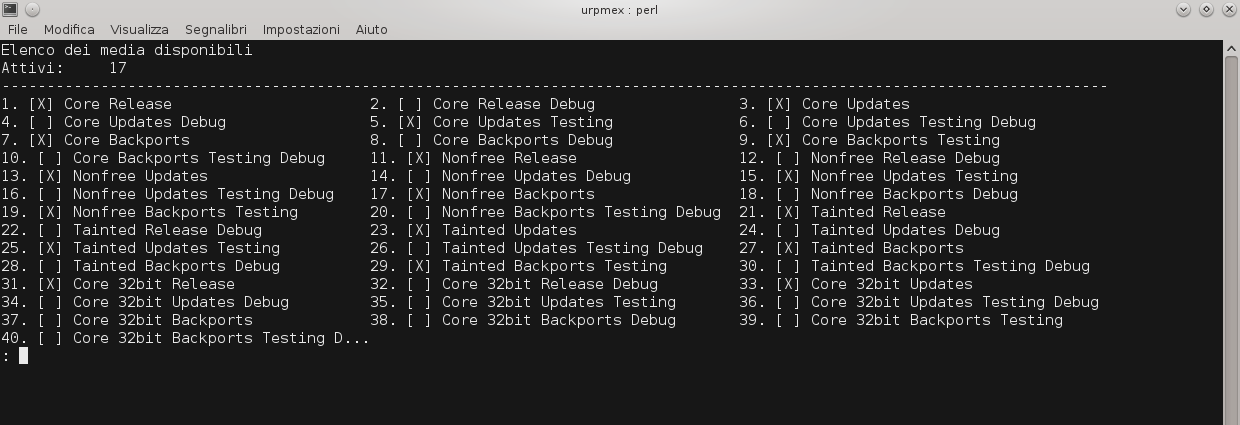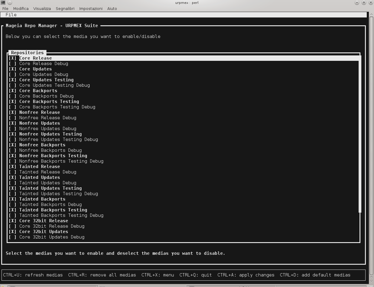 Questa applicazione permette di gestire in modo molto semplice i repositories (aka media) di Mageia tramite un qualsiasi terminale grazie ai widget ncurses.