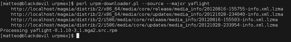 Questa utility vi permette di scaricare dai repository attivi sulla vostra Mageia i pacchetti rpm o src.rpm senza la necessità di installarli. Attualmente supporta solo i repository http e ftp, a breve anche quelli basati su rsync. L’utilità di questo strumento è meno evidente perché rivolta maggiormente agli sviluppatori che ai sistemisti e, anche in questo caso, il suo nome si rifà ad uno strumento presente in Fedora, yum-downloader.